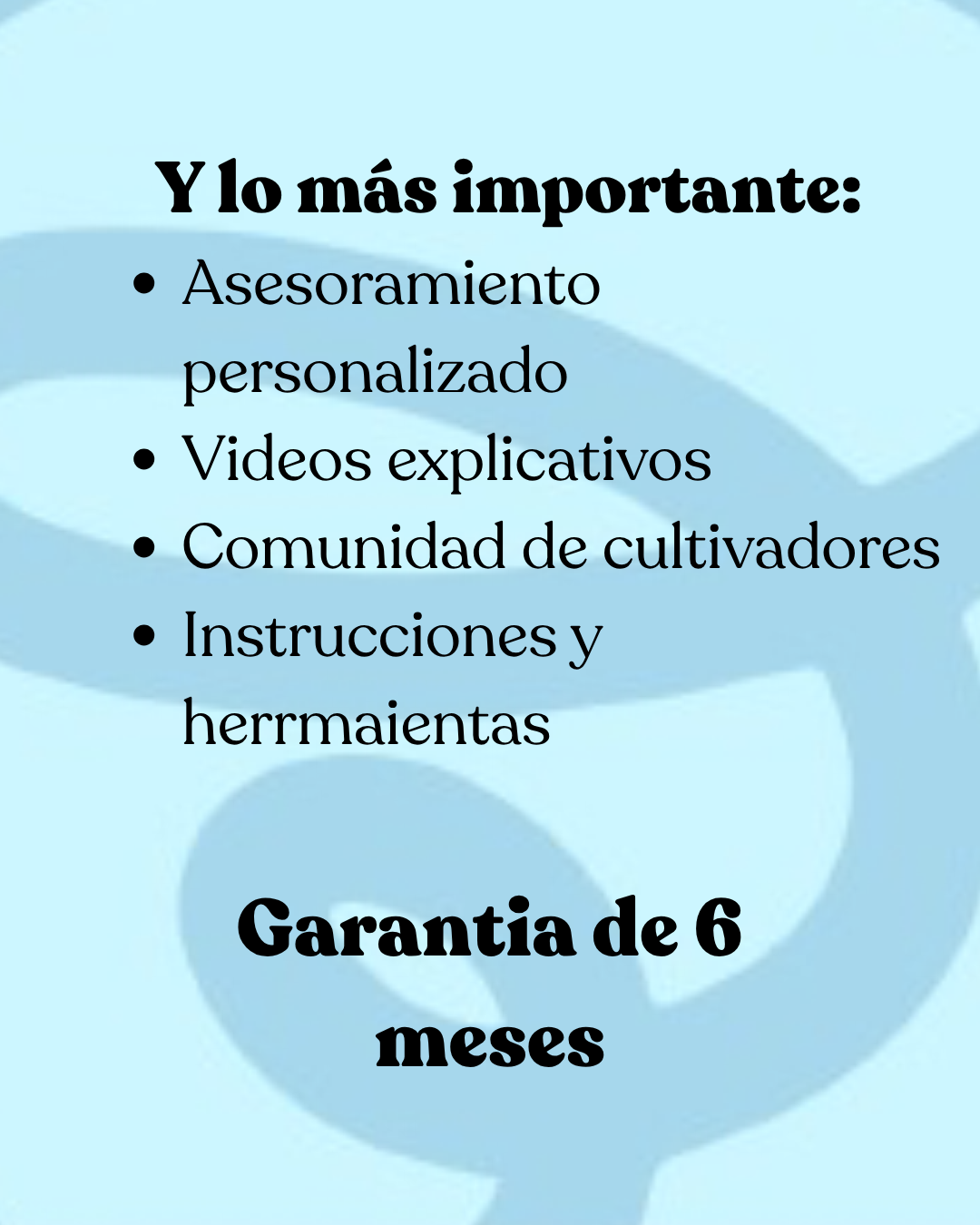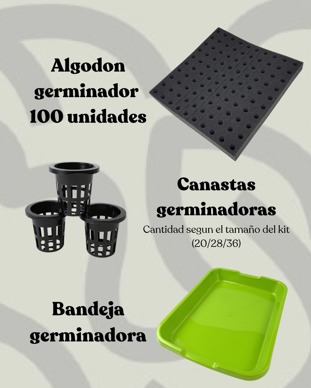 Incluye todo lo necesario para comenzar tu huerta hidropónica.
